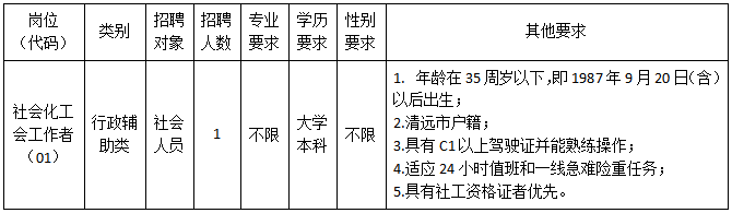 因工作需要,現(xiàn)清城區(qū)總工會面向社會公開招聘1名社會化工會工作者(屬非編制人員,不列入用人單位編制序列,不擔任行政職務),現(xiàn)將有關事項公告如下: