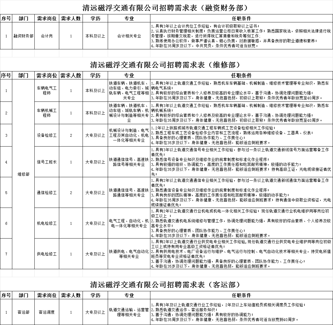 國企招聘!清遠磁浮交通有限公司2023年招聘公告